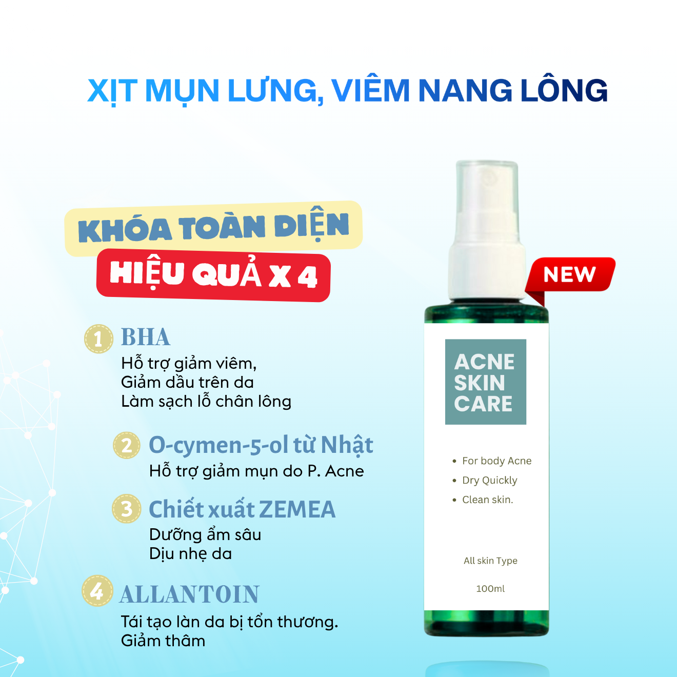 Xịt mụn lưng Acne Skin Care – Công nghệ mới với tinh chất O-cymen-5-Ol từ Nhật Bản